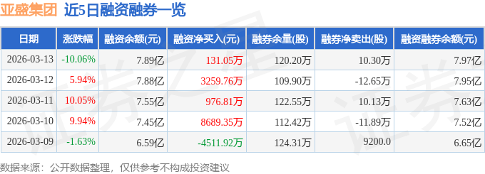 亚盛集团融资融券信息显示,融资方面,当日融资买入2.59亿元,融资偿还2.58亿元,融资净买入131.05万元,连续3日净买入累计4367.61万元。融券方面,融券卖出11.57万股,融券偿还1.27万股,融券余量120.2万股,融券余额752.42万元。融资融券余额7.97亿元。
