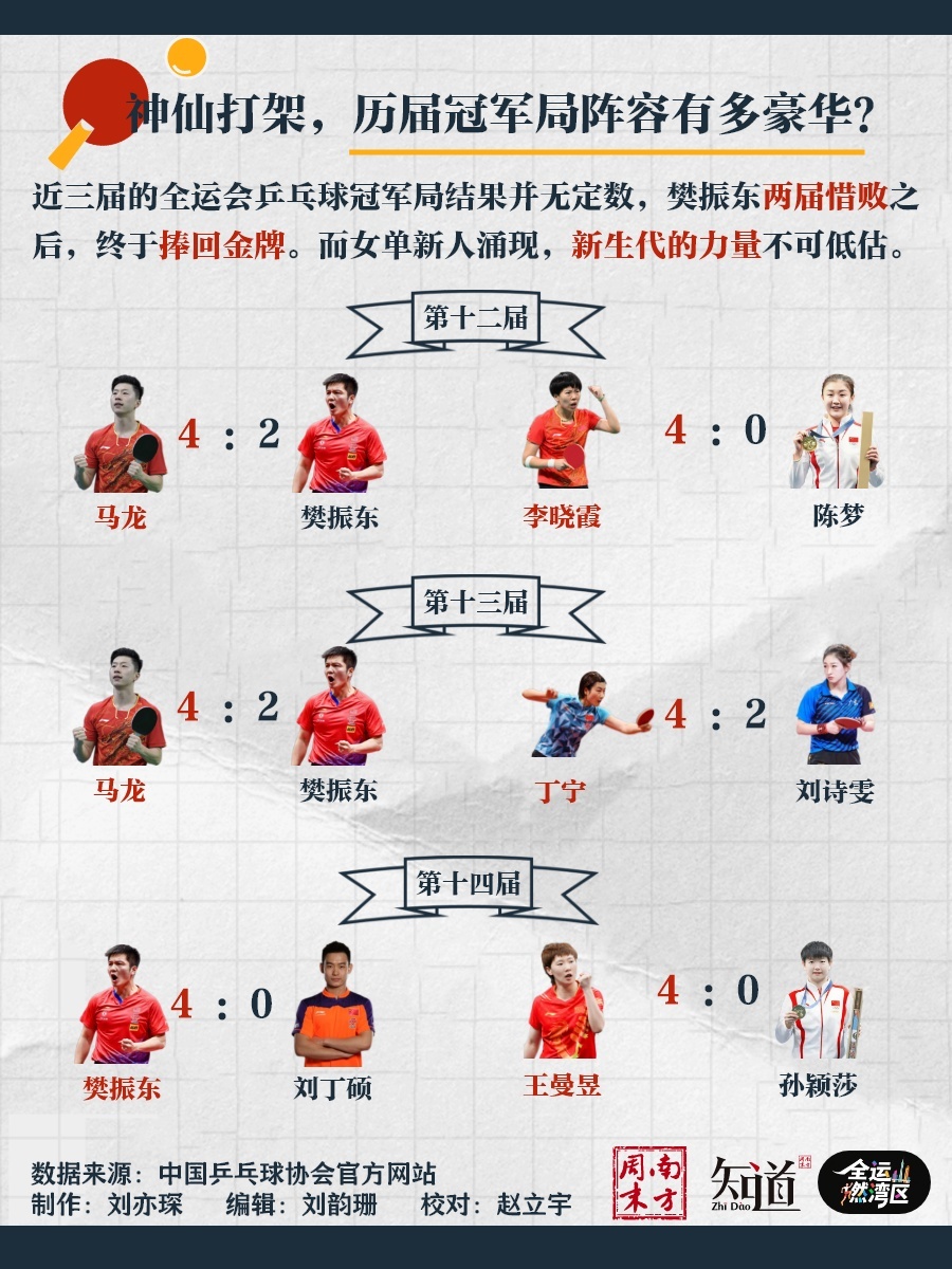 回顾近几届全运会,更能看出乒乓球冠军争夺的波诡云谲。